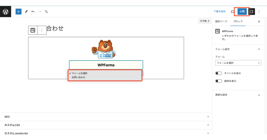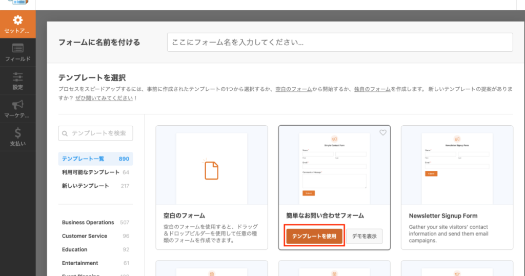 プラグインWP formのお問い合わせページ作成方法です。プラグイン導入の方法はこちら