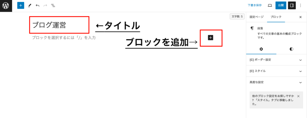 ブログ記事となる投稿ページを作成します。ブロックの機能の種類が多いのでよく使うものを抜粋します。