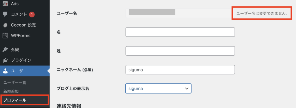 通常、Word Pressのユーザー名を変更することはできません。