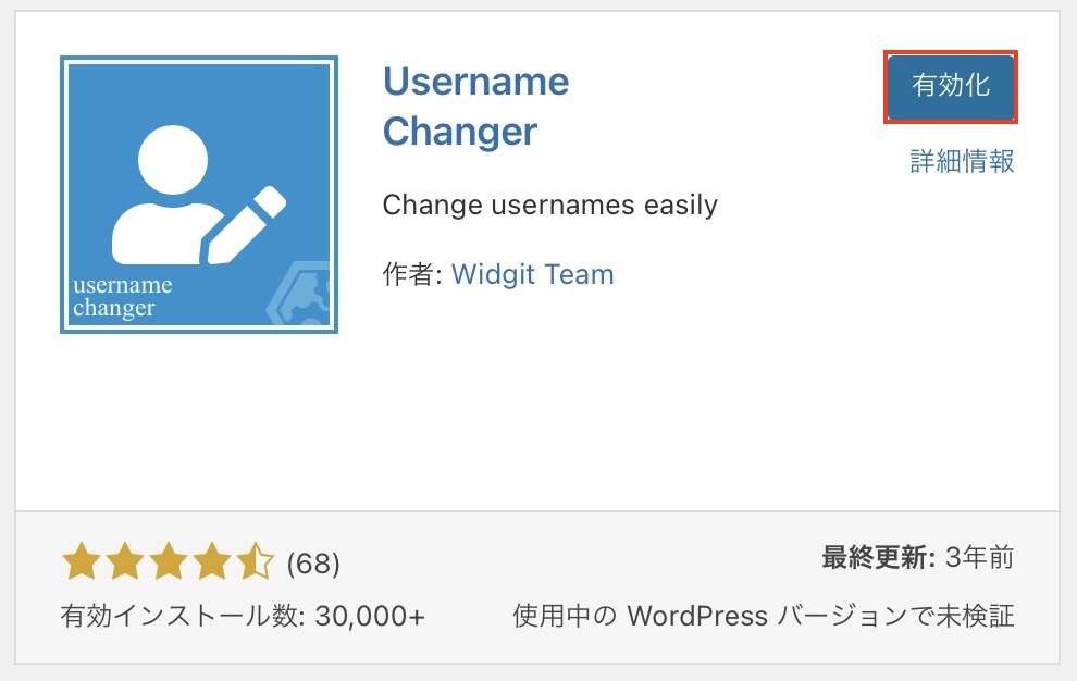 ②【Username Changer】と検索し、今すぐインストール>有効化をクリック