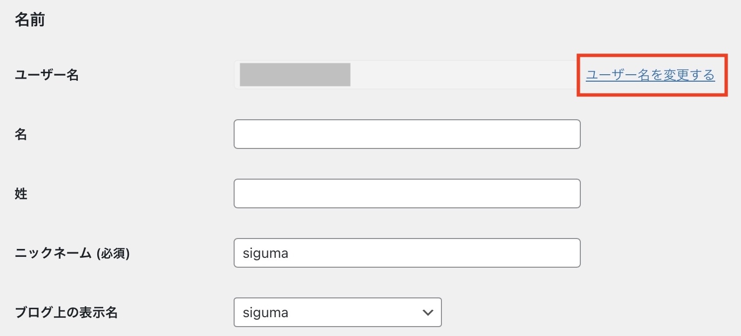 セキュリティの観点からブログ上での名前とユーザー名は同じものにしないようにしましょう。